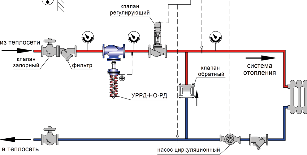 Универсальный регулятор давления УРРД-125-НО предназначен для автоматического поддержания заданного давления воды, водяного пара, водного раствора этиленгликоля, жидких нефтепродуктов, топлива, масла и других жидких, газообразных и парообразных сред, неагрессивных к материалам регулятора в условиях эксплуатации, установленных на вводах жилых, общественных, промышленных зданий, объектах теплоснабжения, водоснабжения, насосных станциях, тепловых пунктах и других технологических объектах.